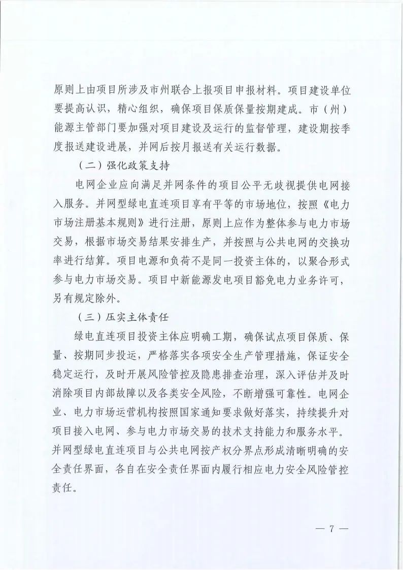 4.尚未開展電網(wǎng)接入工程建設(shè)或因新能源消納受限等原因無法并網(wǎng)的新能源項(xiàng)目,在履行相應(yīng)變更手續(xù)后開展綠電直連。